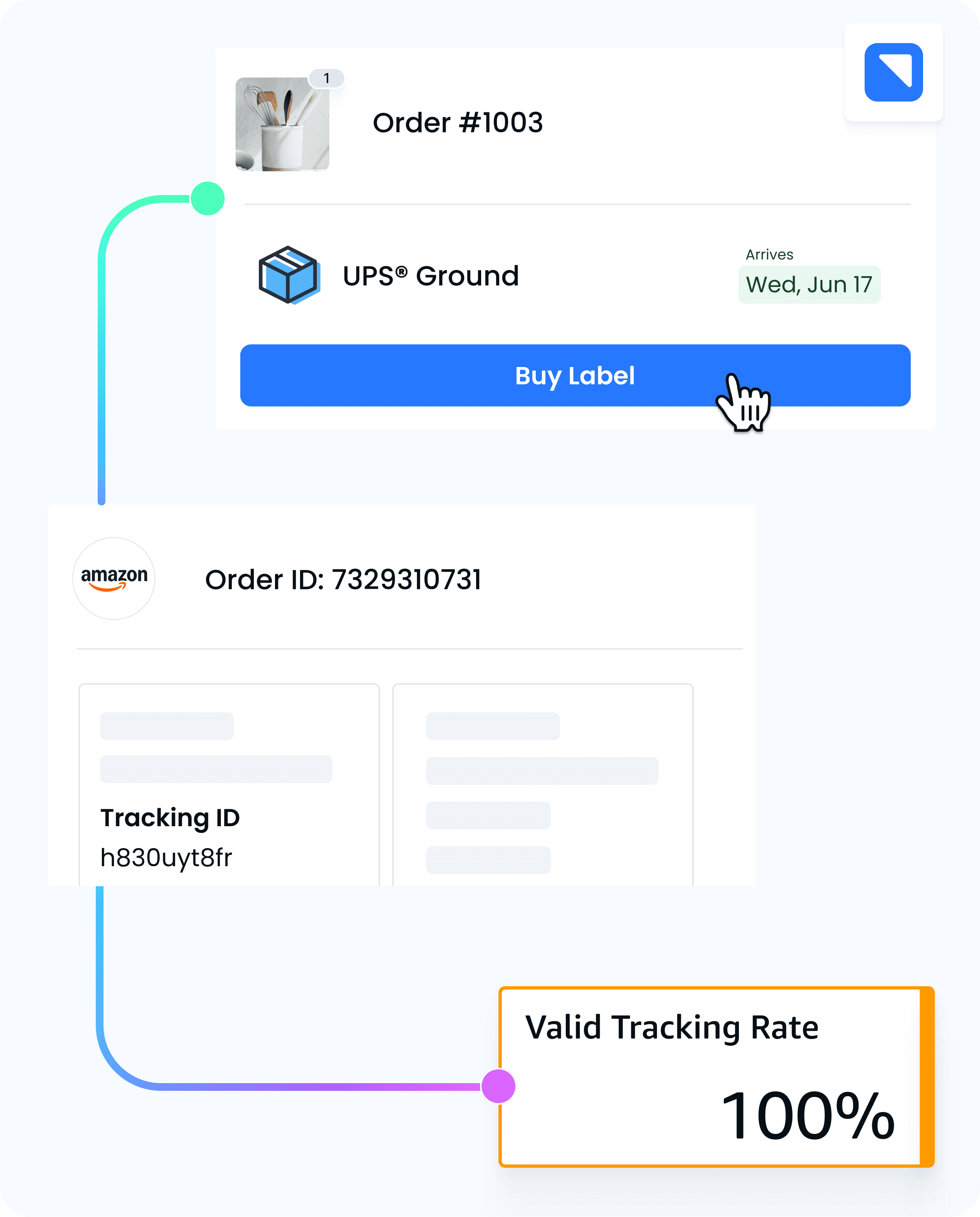 But with Veeqo, you can breathe easy. All labels purchased through us automatically send a valid tracking ID to Amazon, helping your VTR stay at 100%. No more sweating over this metric or worrying about losing visibility into order statuses.
