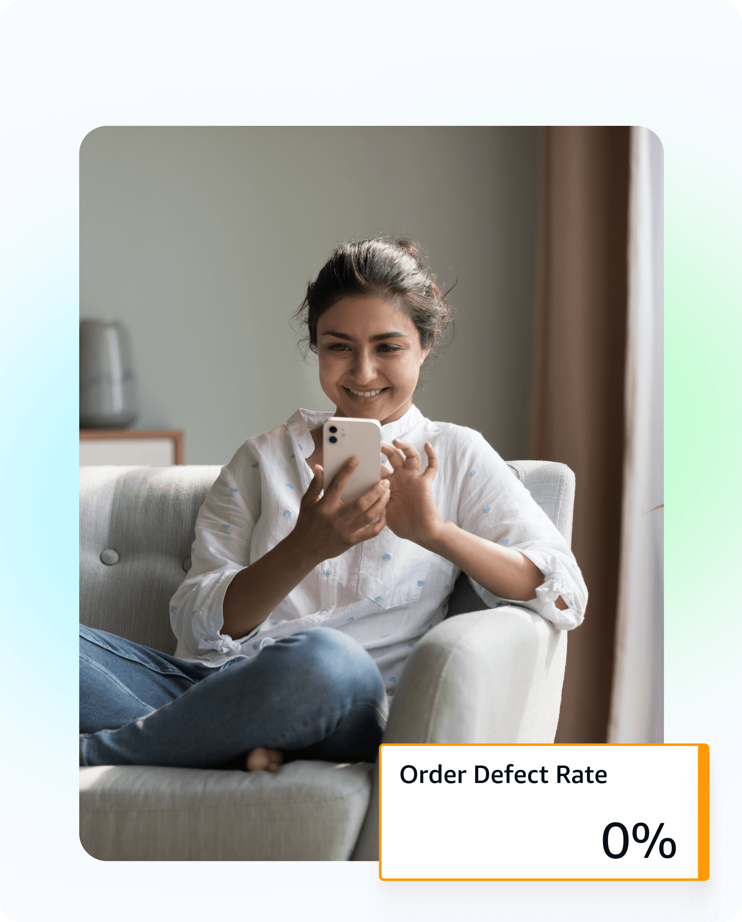 As an Amazon-owned company, when you ship with Veeqo, you get peace of mind that your On-time delivery rate (OTDR) is protected. We also offer claims protection for any Amazon orders where a customer reports an issue with delivery. Focus on your business and let us keep your metrics in top shape.