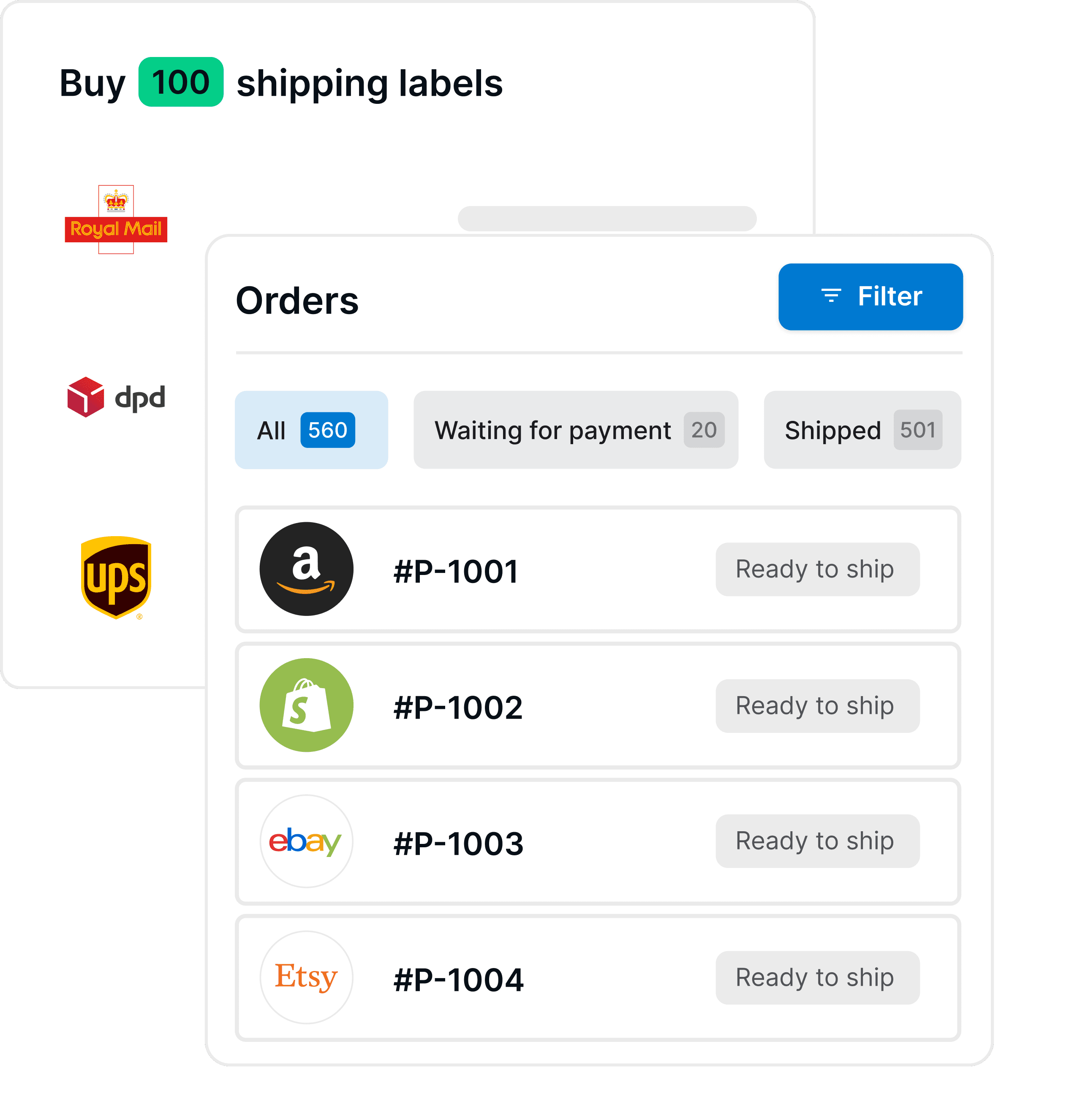 Effortlessly manage orders across Amazon, eBay, Shopify, Walmart and more as they come in.