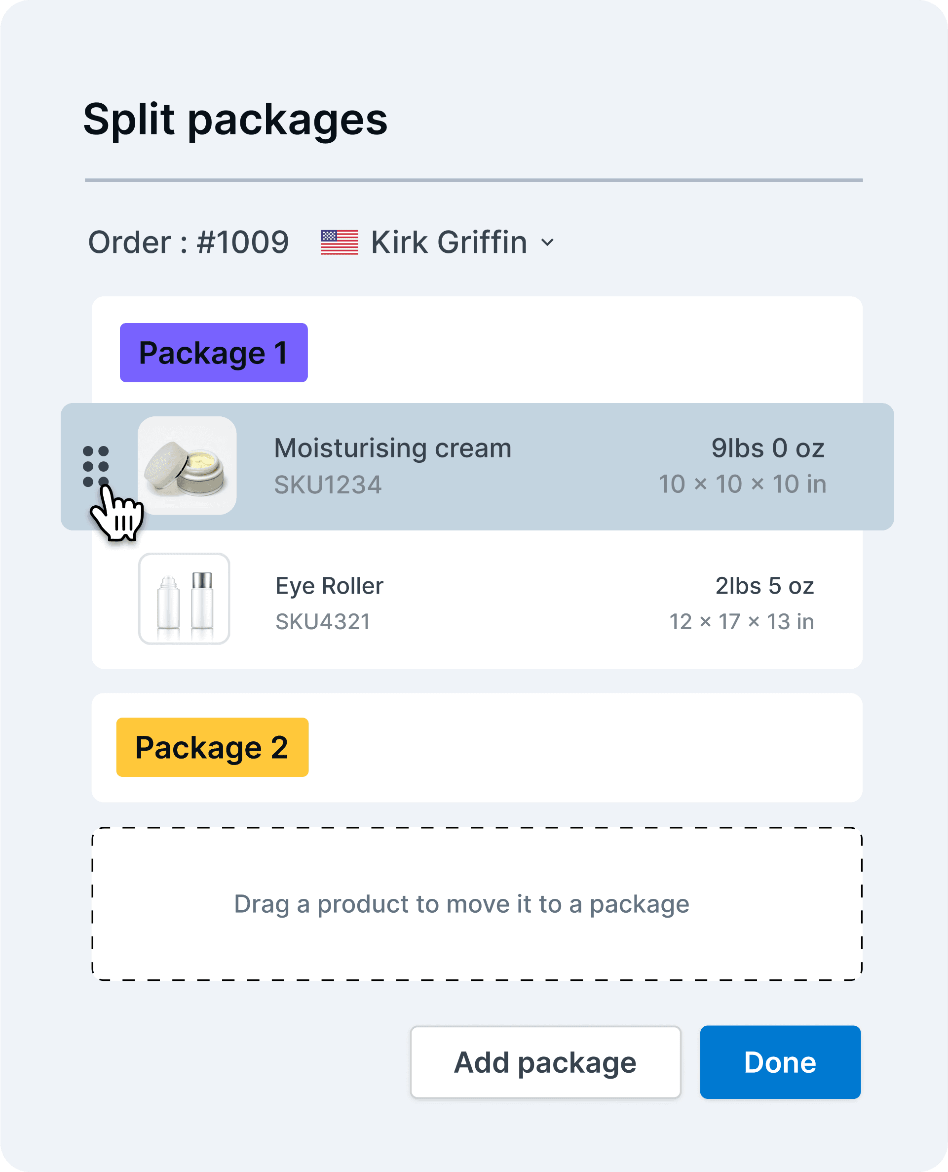Split an order into several packages with ease