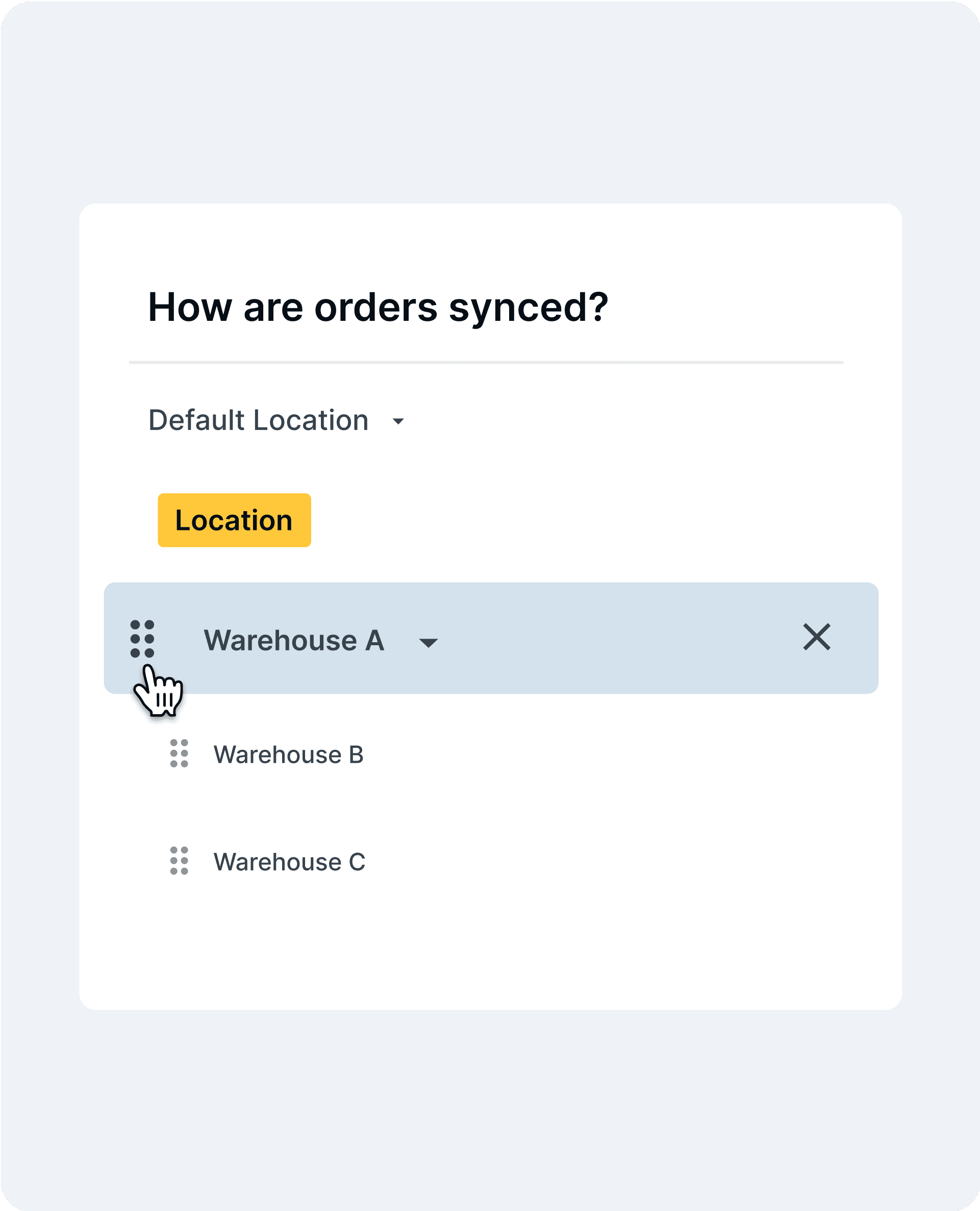 Avoid overselling by automatically allocating orders to a specific location based on the sales channel the order came from and your inventory counts at all your locations.