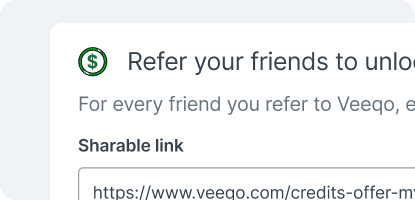 For every friend you refer to Veeqo, earn 30 bonus days of 5% credits!*