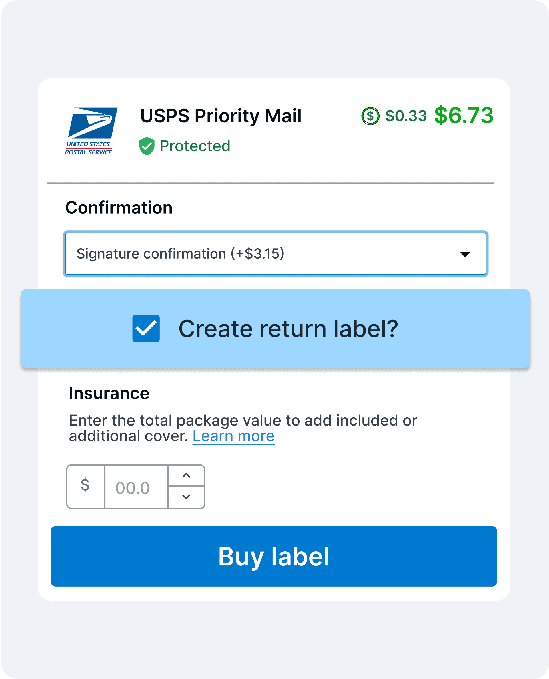 Insurance can be added to your orders in just a few clicks.